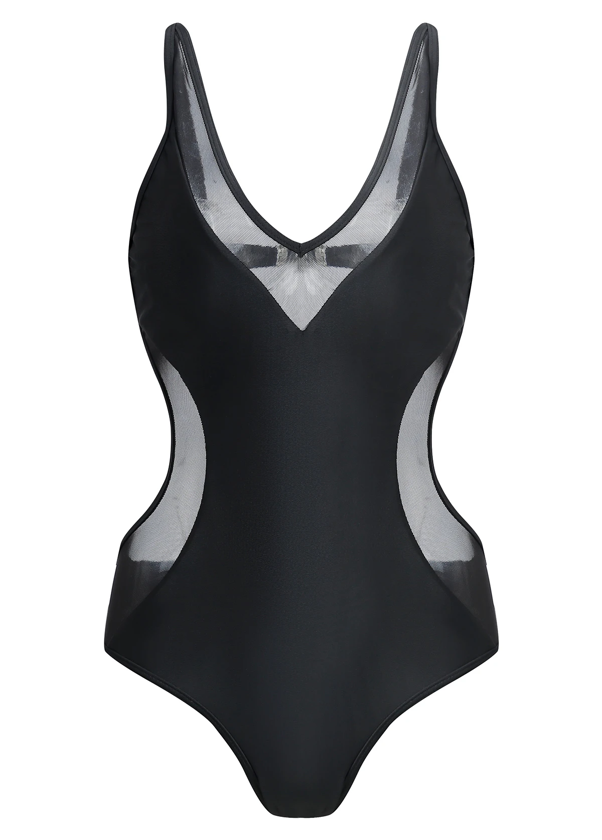 Black Mesh Stitching One Piece Swimwear