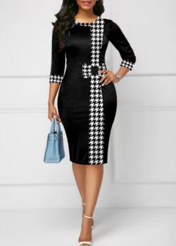 Be the first to review “Black Patchwork Houndstooth Print Bodycon Dress” Cancel reply