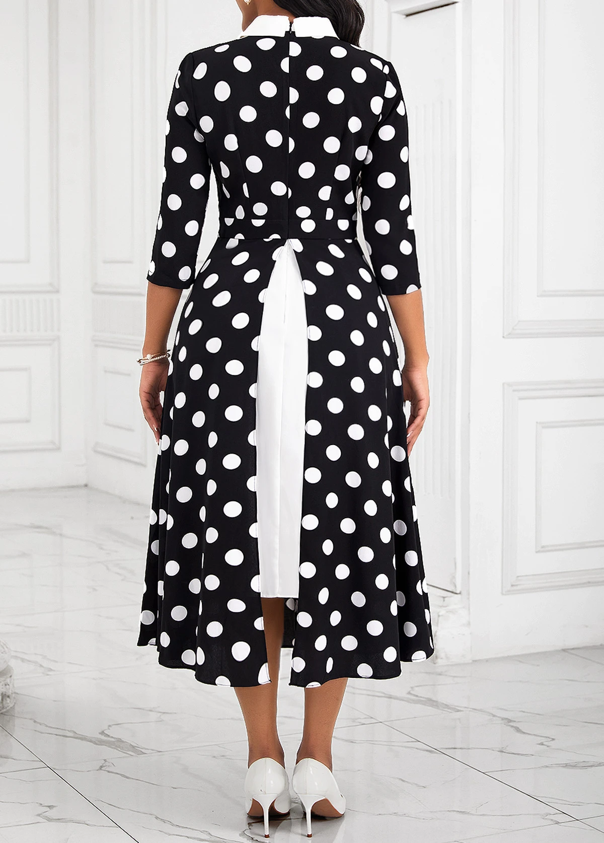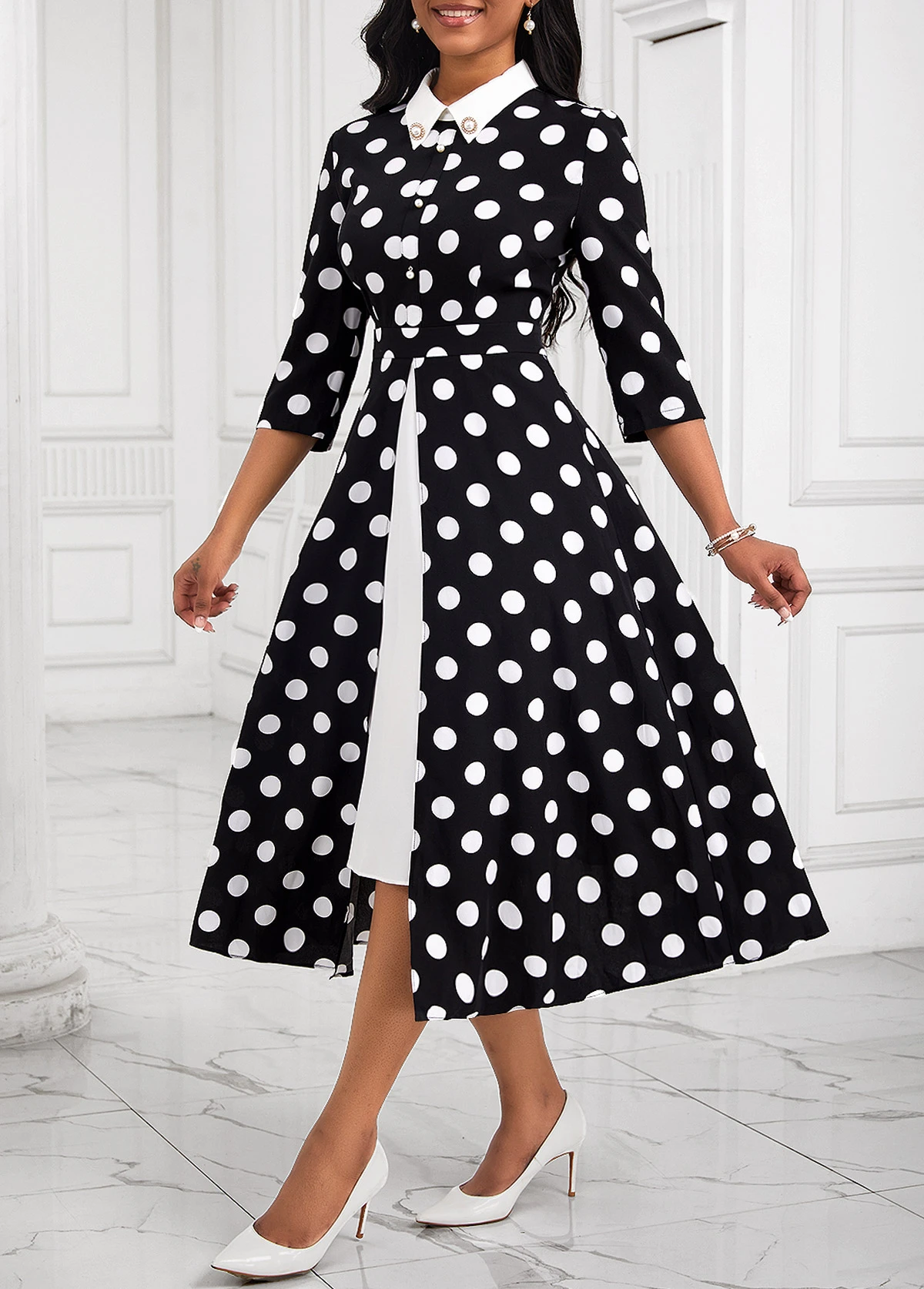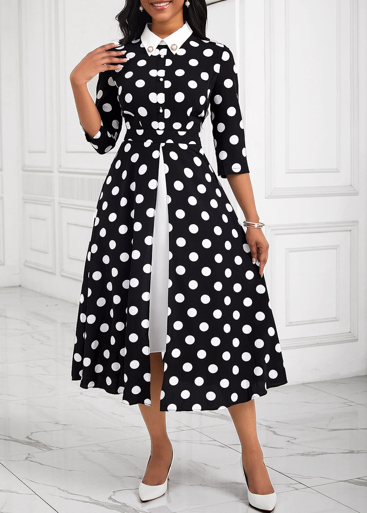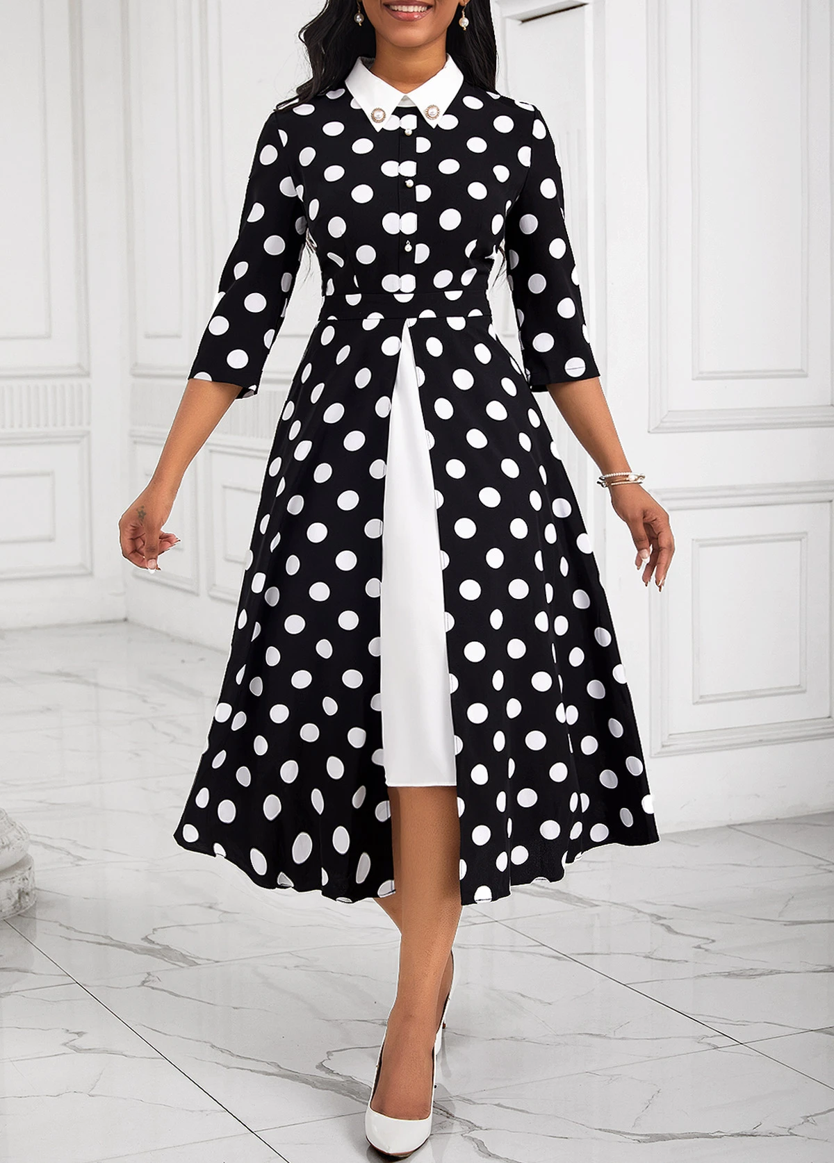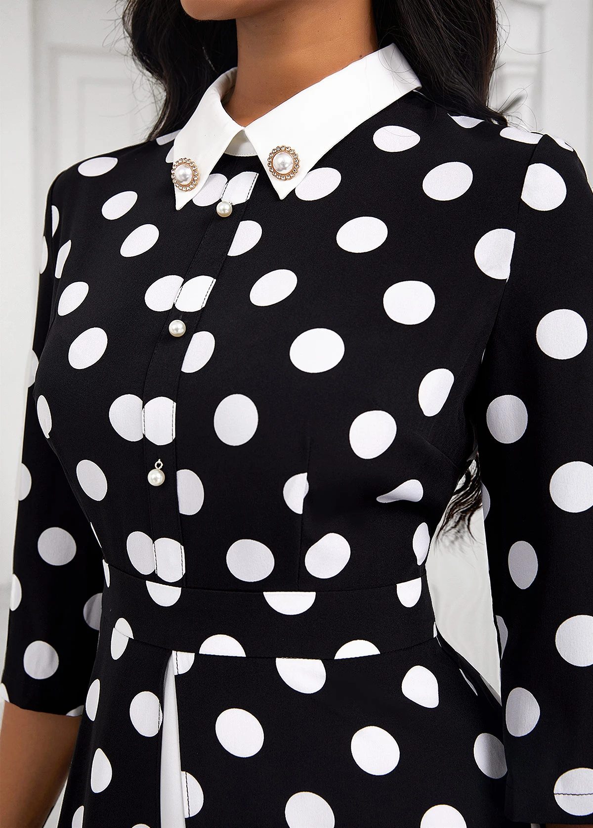 Black Pearl Fake 2in1 Polka Dot Dress