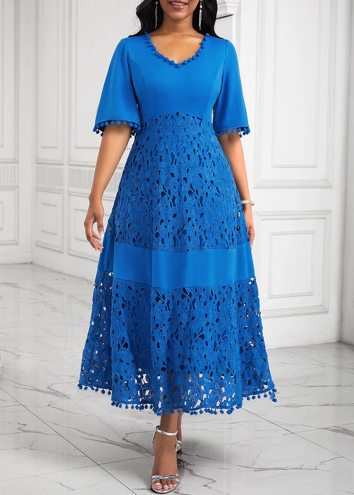 Be the first to review “Blue Patchwork A Line Half Sleeve Dress” Cancel reply