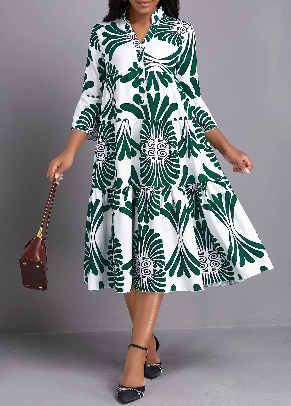 Be the first to review “Green Button Leaf Print A Line Dress” Cancel reply