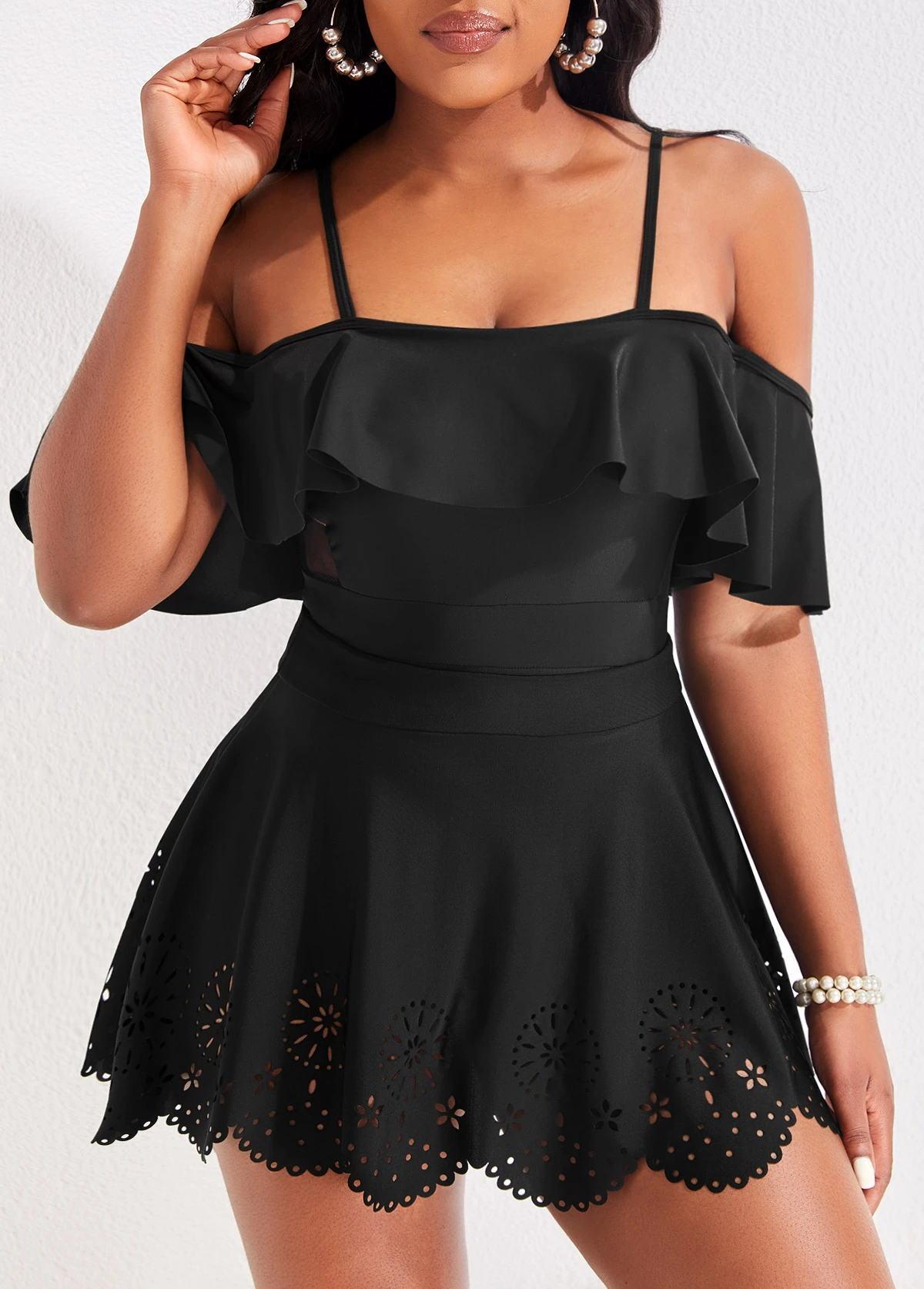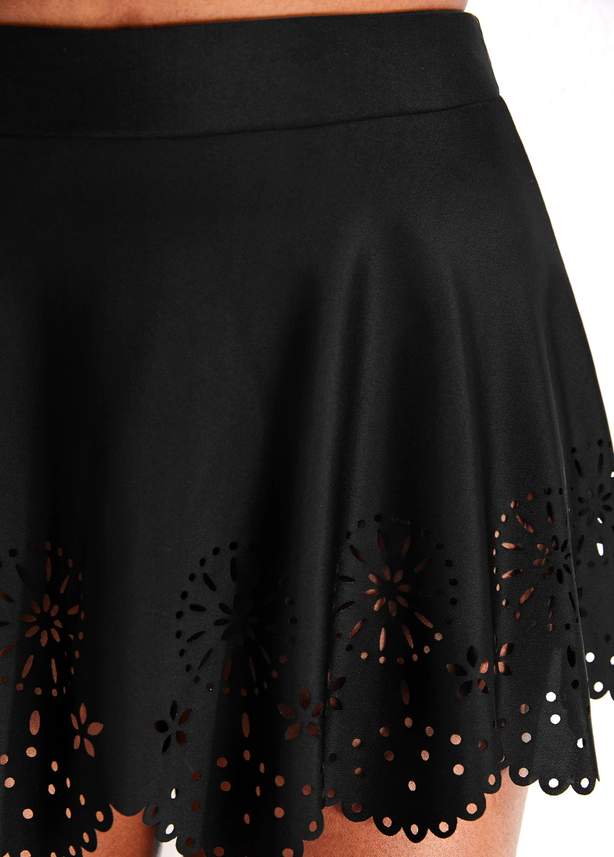 High Waisted Black Hollow Swim Skirt