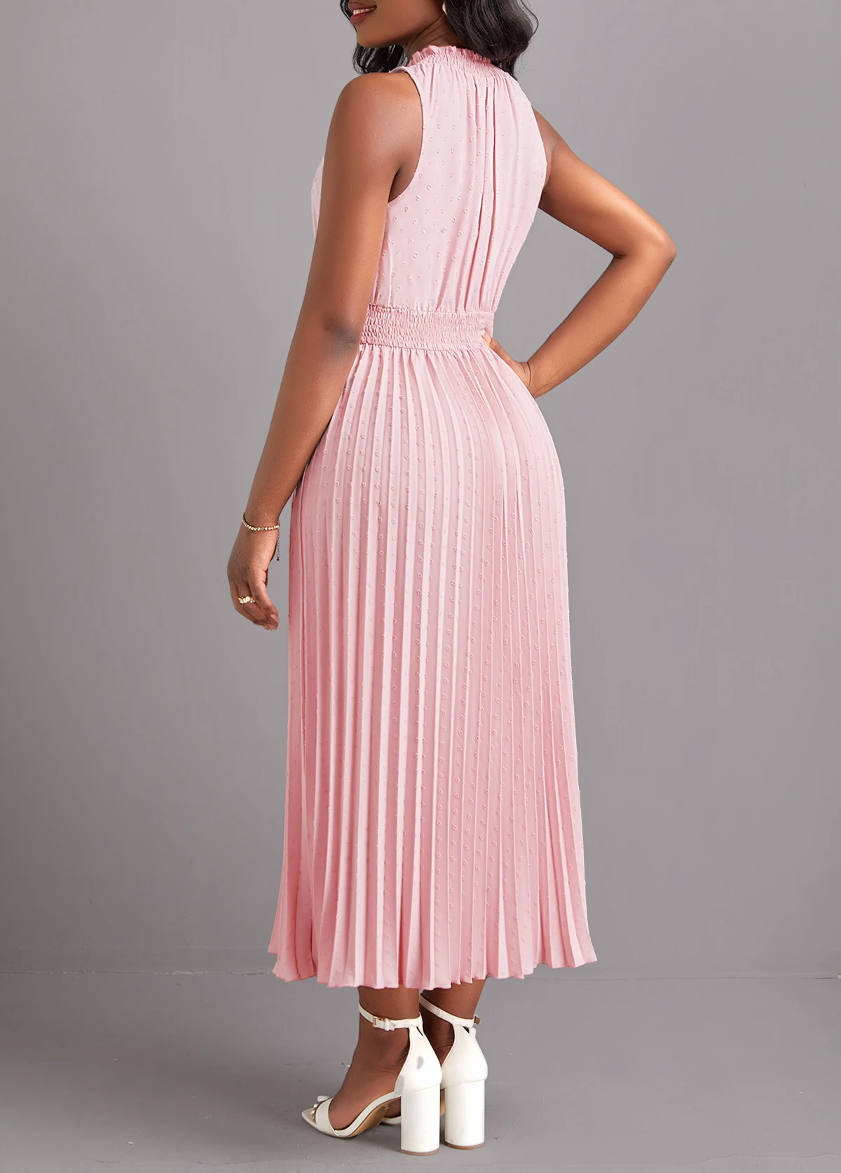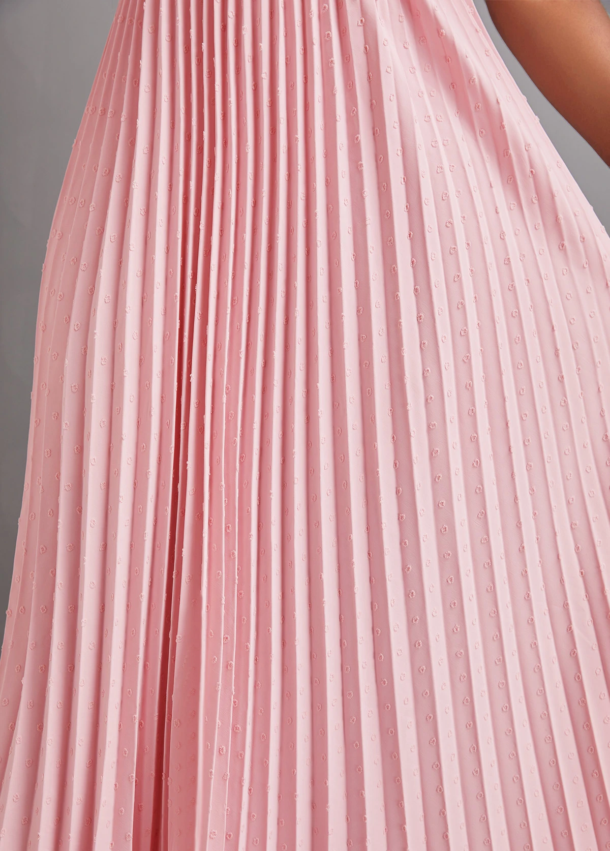 Light Pink Pleated Sleeveless Tie Front Dress