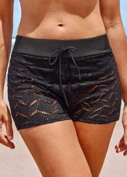 Mid Waisted Black Lace Beach Shorts